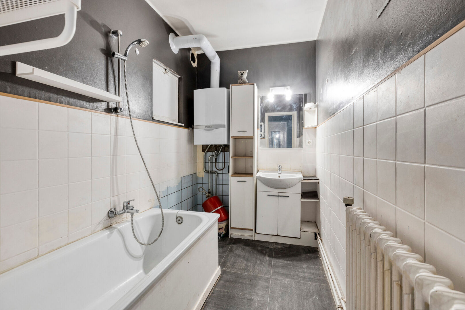 Ondertussen is het appartement toe aan wat opfrissingswerken. De ideale kans voor een investeerder / bewoner die zelf bijvoorbeeld ook de handen uit de mouwen weet te steken. Het appartement heeft reeds een goede indeling en beschikt alvast over een vernieuwd, geïsoleerd dak, vernieuwde ramen (HR glas), een recente HR-top aardgasketel en deels over nieuwe vloeren.