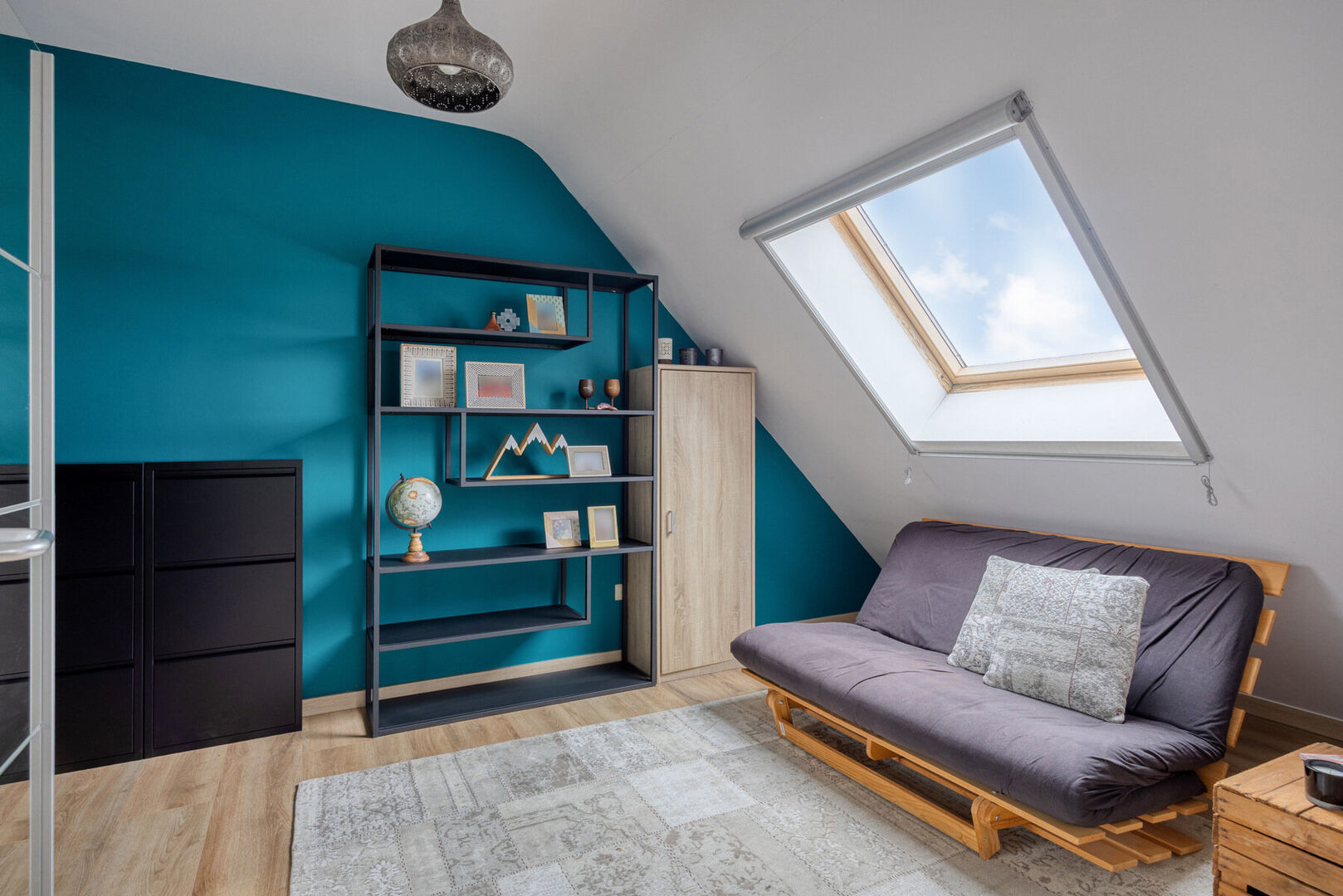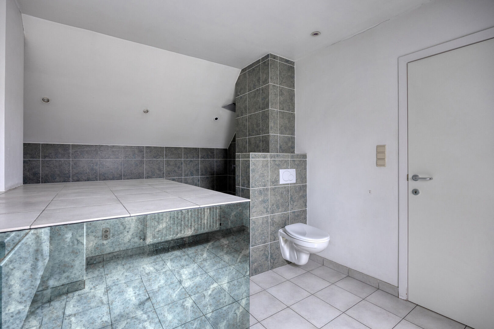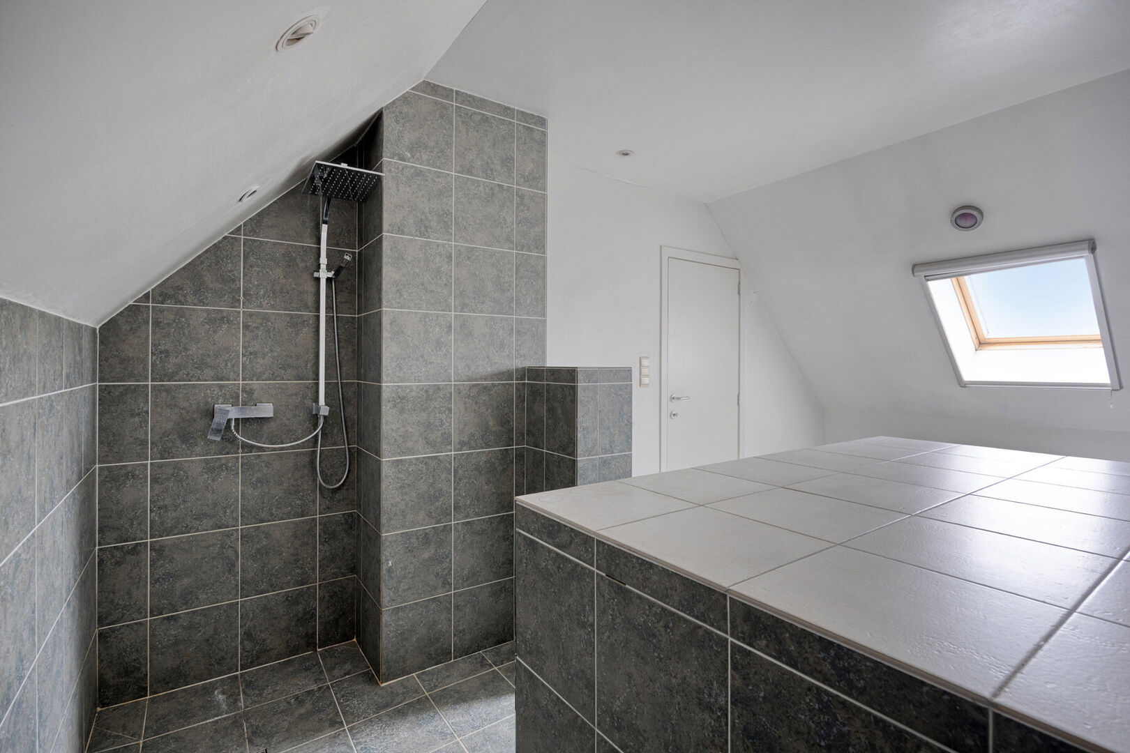 De open, trap leidt verder naar de 3de verdieping waar je enerzijds een ruime slaapkamer treft en anderzijds zich ook de ruime badkamer met inloopdouche en dubbele lavabo en toilet bevindt.