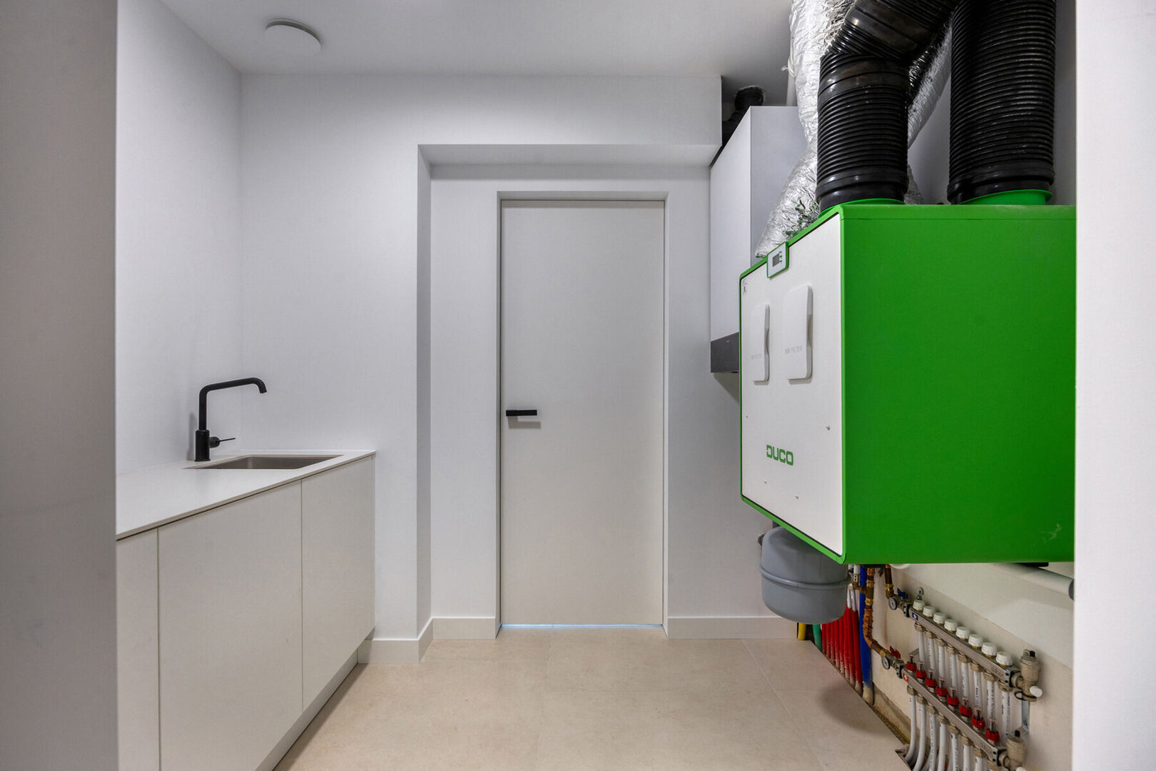 De nieuwbouwwoning werd afgewerkt in 2025 en is dus gloednieuw. Ze werd gebouwd volgens de nieuwste bouwtechnieken en werd voorzien van een hybride verwarmingssysteem. Een Viessman condensatieketel in combinatie met een lucht-lucht warmtepomp maakt het mogelijk om de woning (en het zwembad) op de meest optimale manier te verwarmen. Verder werden er zonnepanelen (23) voorzien die 10.000 watt leveren aan stroom. Bovendien werd er een ventilatie D systeem geinstalleerd. Het resultaat van deze investering levert de villa een A+ label op wat betreft energiezuinigheid. Dit ziet men maar zelden in Belgie!