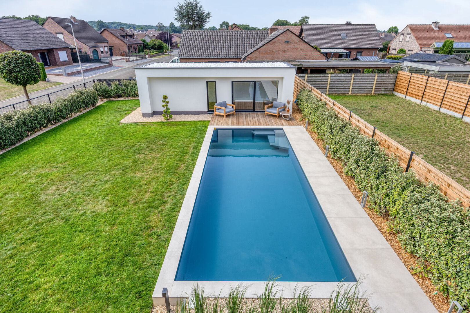 Buiten wacht pure verwennerij: een verwarmd privézwembad op hydrolyse (10,5m op 4m) met compleet afgewerkt poolhouse nodigt uit tot ontspannen of feestelijke zomerdagen. Dankzij de zuidwestelijke oriëntatie geniet u van maximale zon en bovendien een sfeervolle zonsondergang. Het overdekt terras garandeert bovendien droogte tijdens een typisch belgische zomer (zon met regenbuien).
