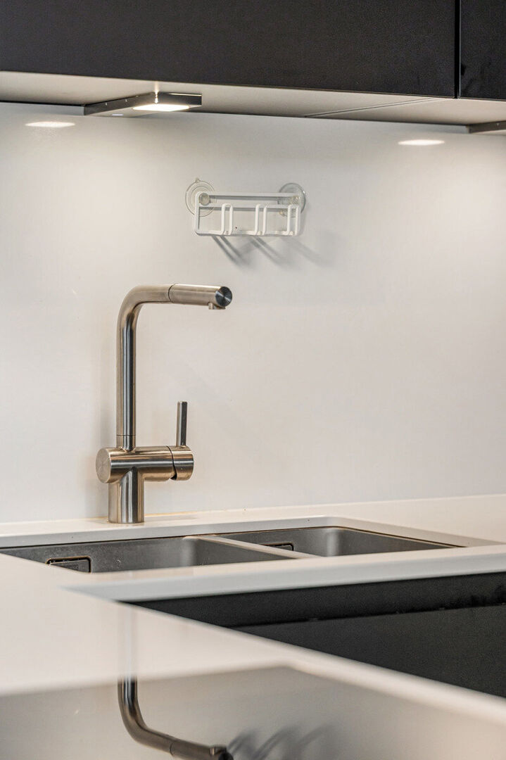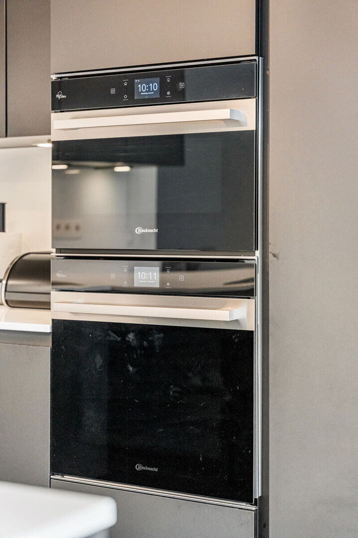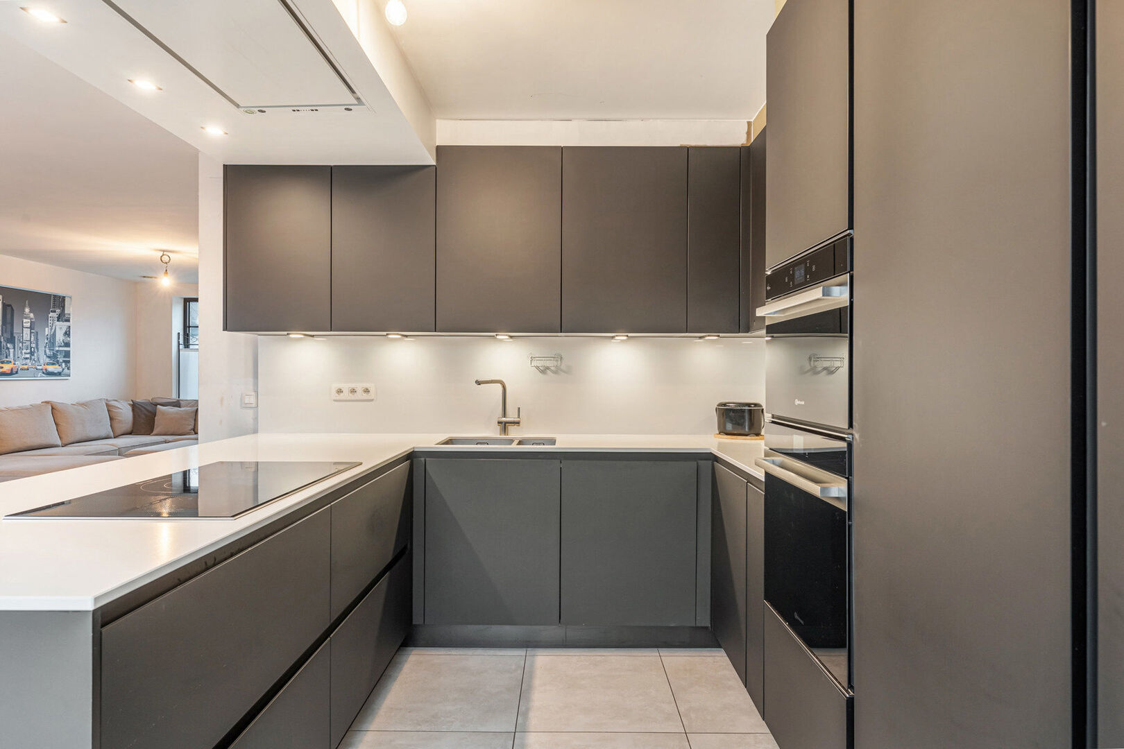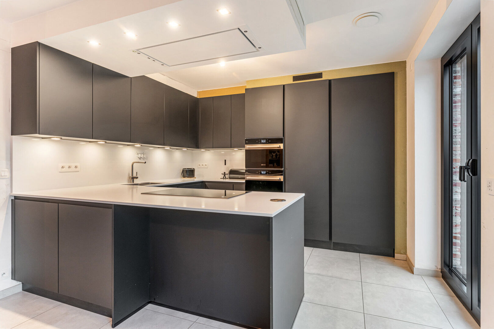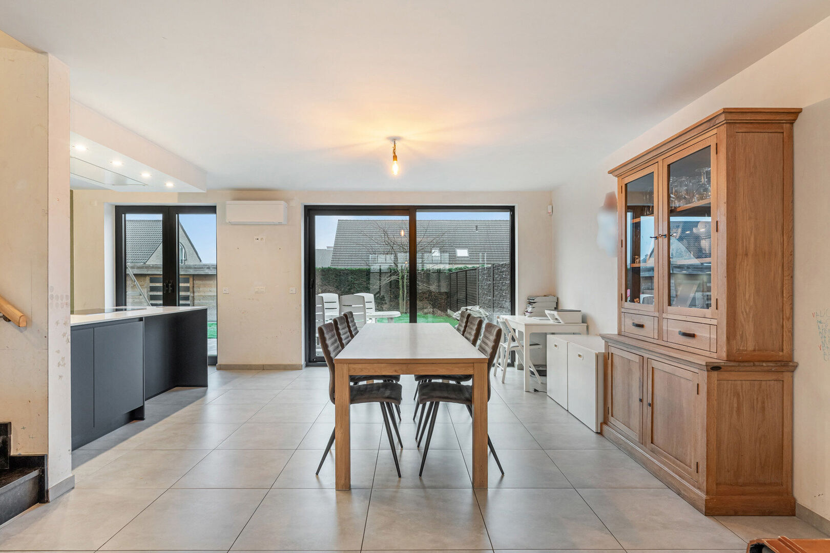 Gelijkvloers vind je eerst een ruime inkomhal met gastentoilet, daarna een zeer lichtrijke leefruimte met volledig uitgeruste keuken (inductie kookvuur, ingebouwde afzuigkap, combi-microgolfoven, heteluchtoven, ruime koelkast, afwasmachine, 1,5 spoeltafel), inclusief eiland met 2 zitplaatsen. Via de verdoken deur in de keuken kom je terecht in de ingerichte wasplaats/berging, voorzien van maatkasten en extra spoeltafel. Via hier bereik je de achterdeur naar de tuin en tot slot de inpandige garage met sectionaalpoort en bergruimte onder de traphal.