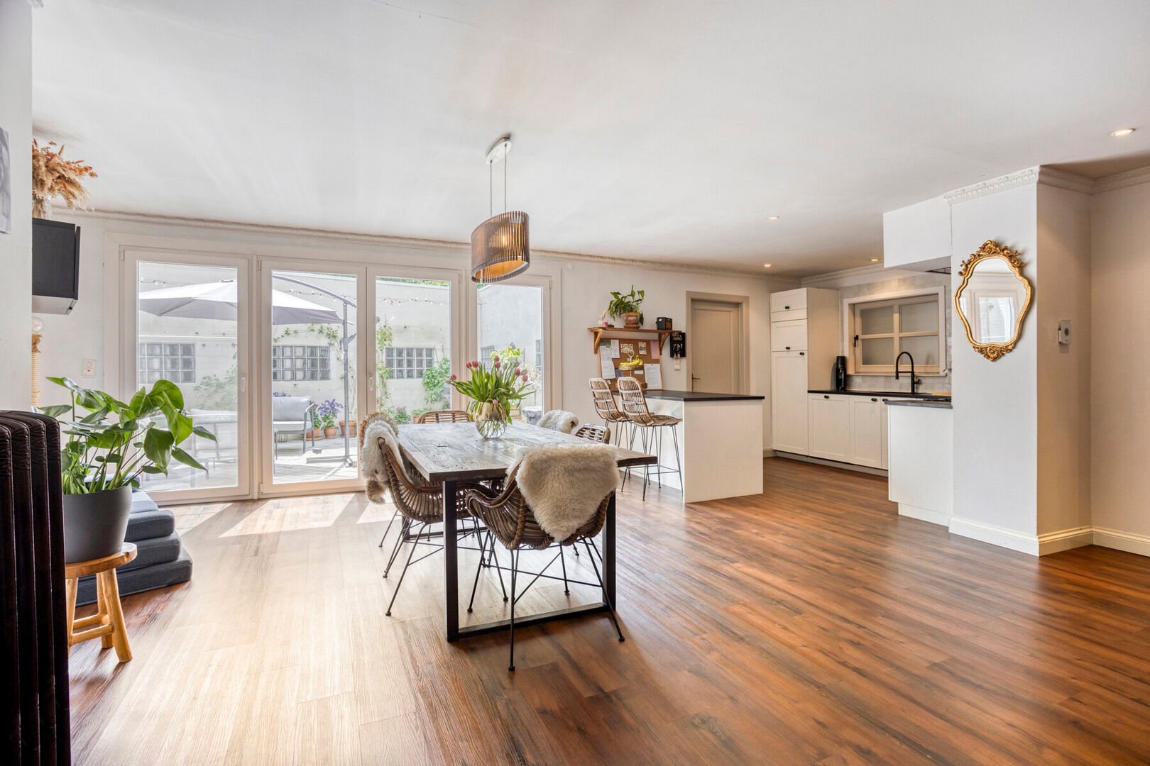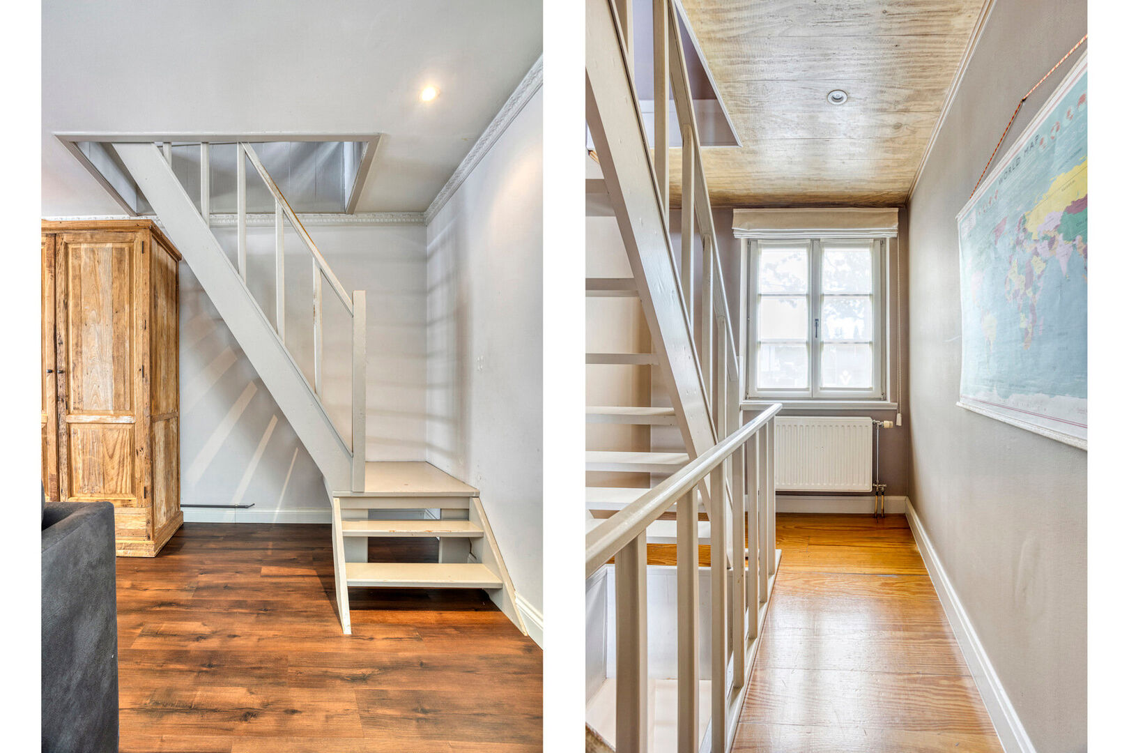 Deze halfopen en meer dan ruime gezinswoning werd oorspronkelijk opgericht in 1939, doch in 2006 tezamen met het naastgelegen appartementsgebouw totaal gerenoveerd door de vorige eigenaar. De warme materialen creëren de karaktervolle sfeer in dit huis. Dezelfde stijl wordt in het hele huis binnen en buiten doorgetrokken.