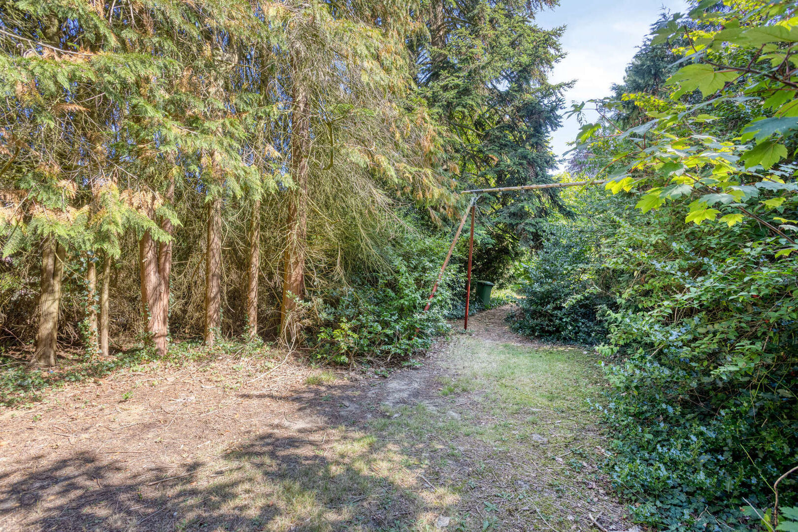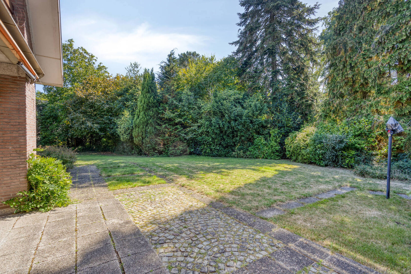 De tuin is zuidwestelijk gericht en wordt omheind door hoge hagen die de privacy en het groene karakter garanderen. Men geniet hier dus op de juiste momenten van de dag van de zon. Parkeerruimte vindt men dan weer genoeg dankzij de verharde oprit die eveneens naar de dubbele garage leidt.