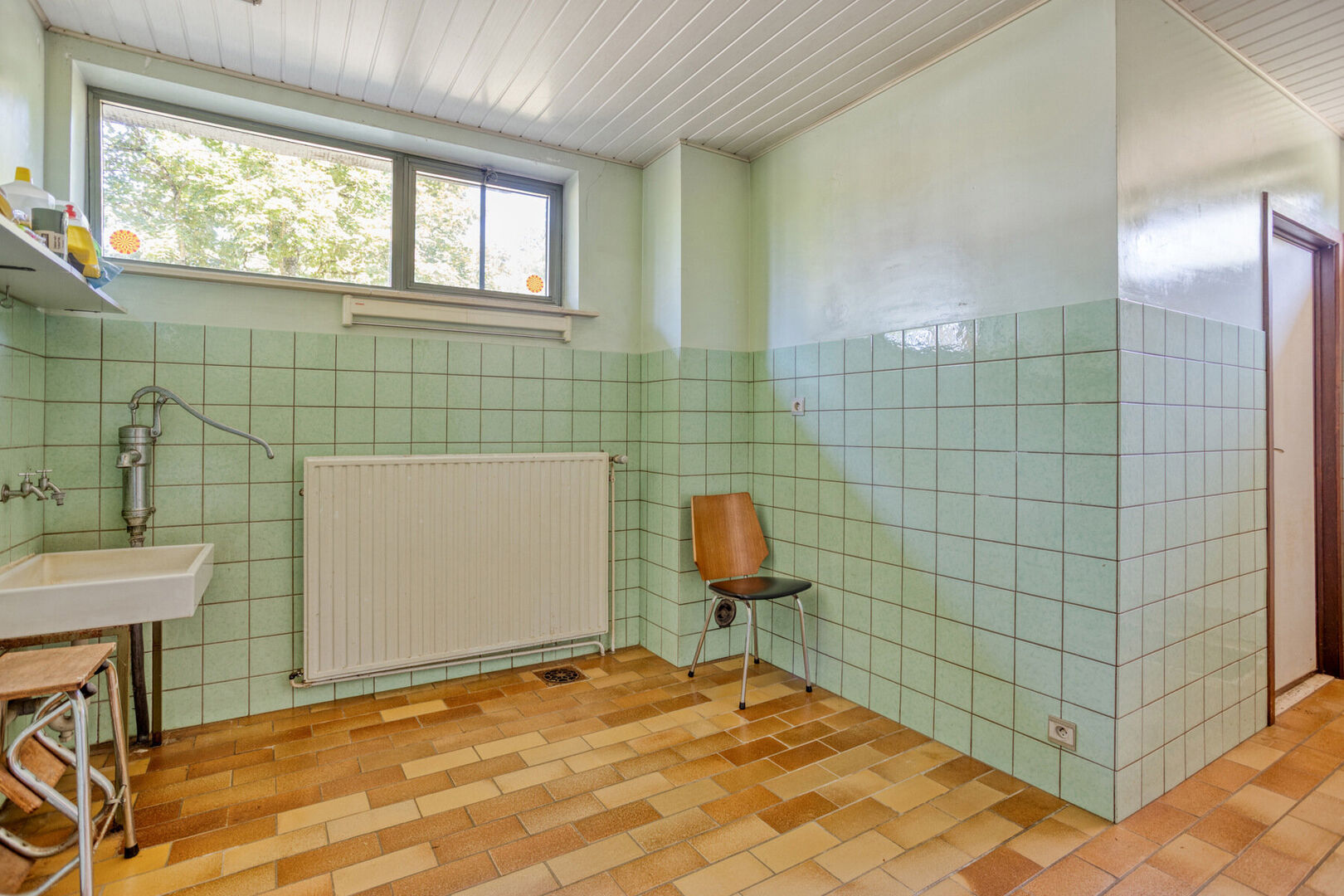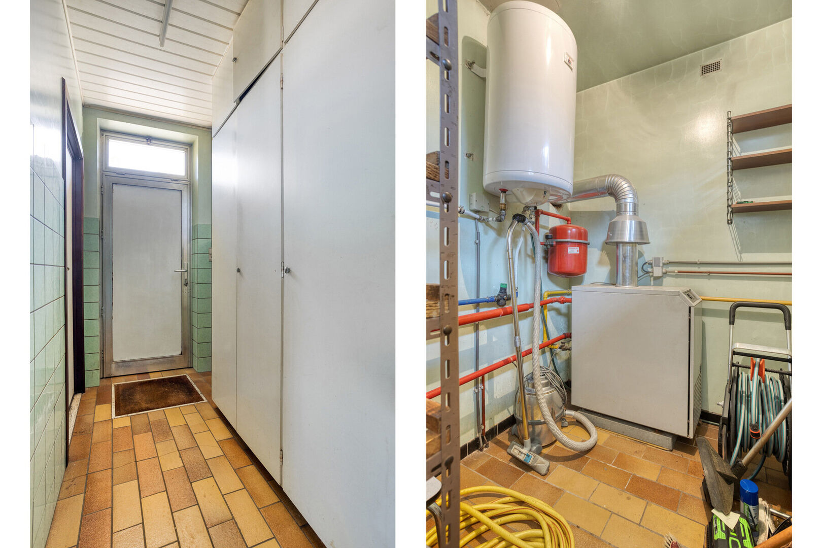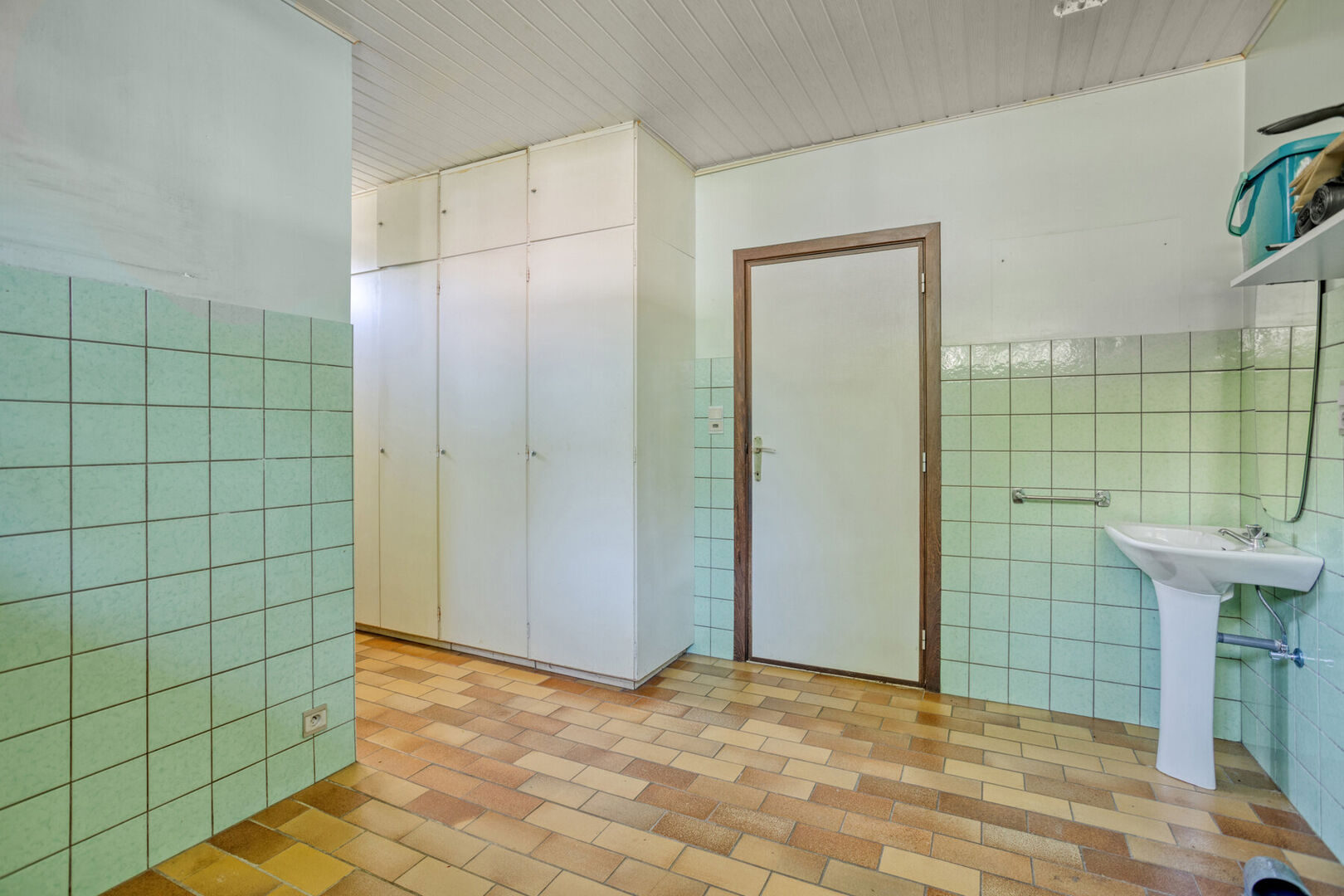 Binnenstappen in de woning doen we in de ruime inkomhal met voldoende ruimte voor vestiaire. Links tref je eerst het gastentoilet, de gelijkvloerse badkamer en de eerste slaapkamer die eveneens dienst kan doen als gelijkvloers bureel / praktijkruimte (18m2). Rechtdoor betreed je de ruime keuken met aan de rechterzijde de lichtrijke woonkamer met houthaard en toegang naar de tuin. Naast de keuken links bevindt zich een koele berging van waaruit de kruipkelder toegankelijk is. Rechtdoor tref je een uiterst ruime wasplaats, technische ruimte en hal naar de achterdeur van de woning.