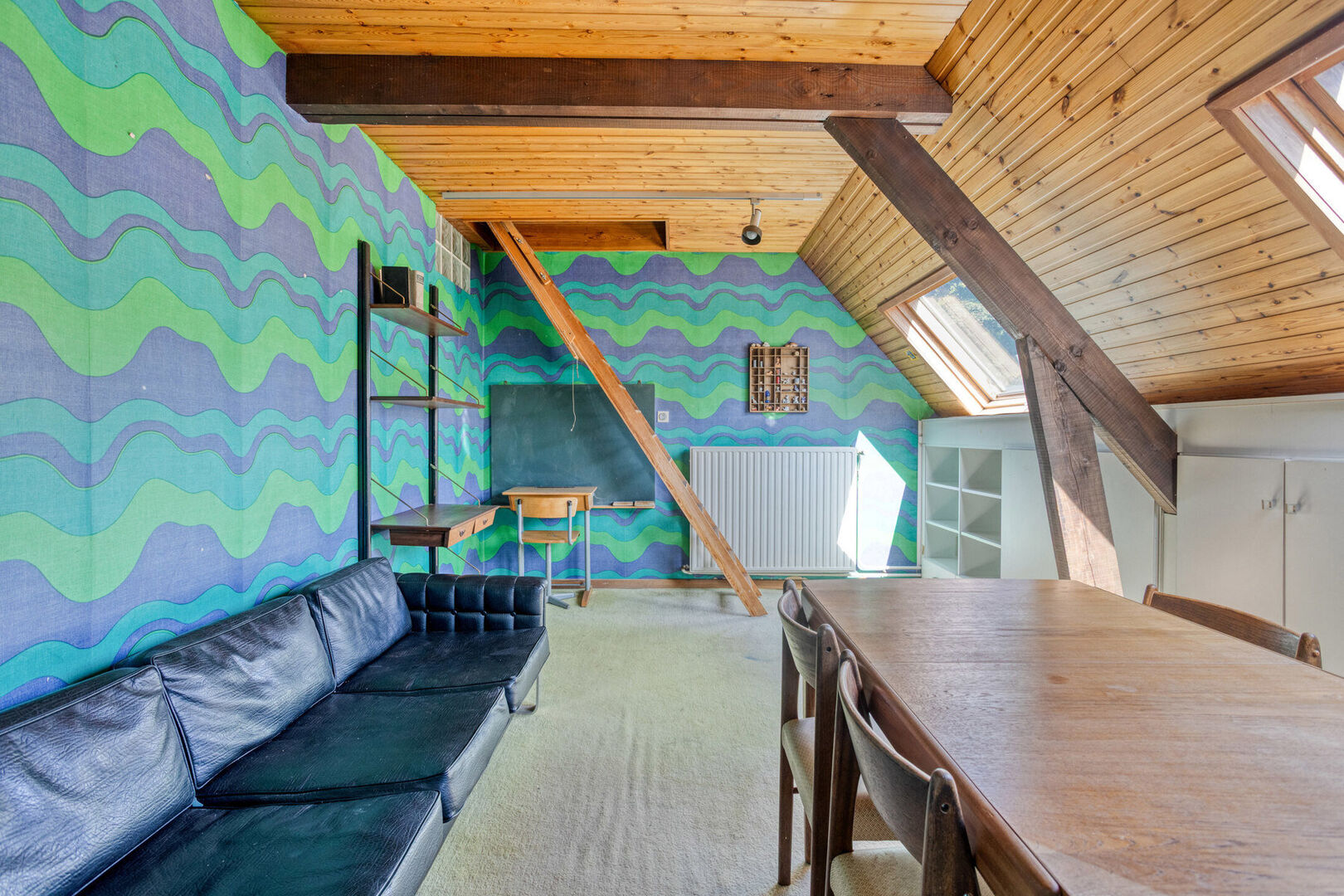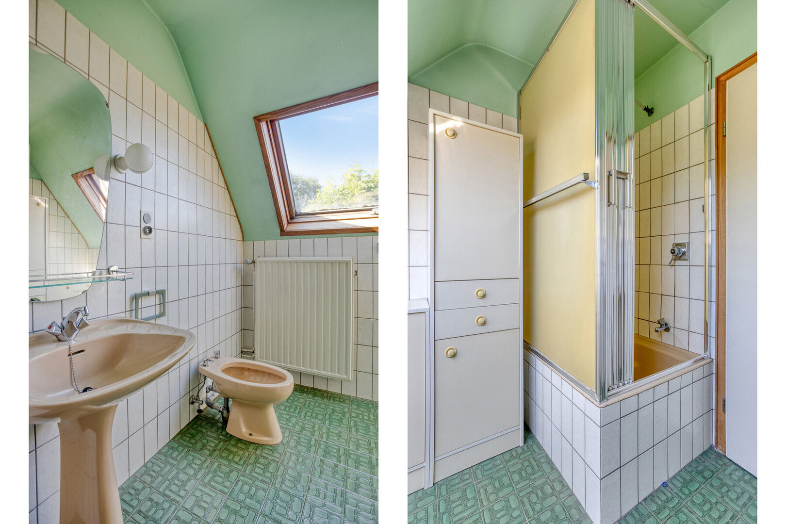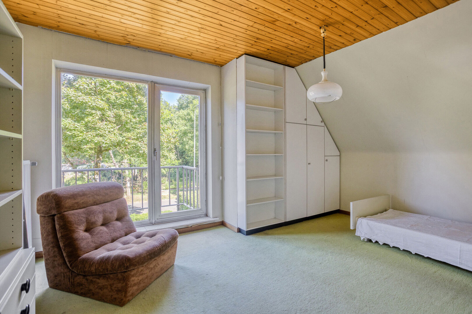 Op de eerste verdieping vinden we een ruime overloop terug die leidt naar een apart toilet, naar de tweede badkamer, naar een kinderslaapkamer / bureel (9 m2) en naar nog eens 4 ruime slaapkamers van circa 32m2, 20 m2, 17m2 en 13m2. De master bedroom, met toegang naar een overdekt terras, is eenvoudig op te splitsen voor een eventuele extra slaapkamer / dressing ensuite. In de tweede grootste slaapkamer, treft men een zolderluik met vlizo-trap naar de zolder van maar liefst 60 m2. Aan bergruimte dus geen tekort hier.
