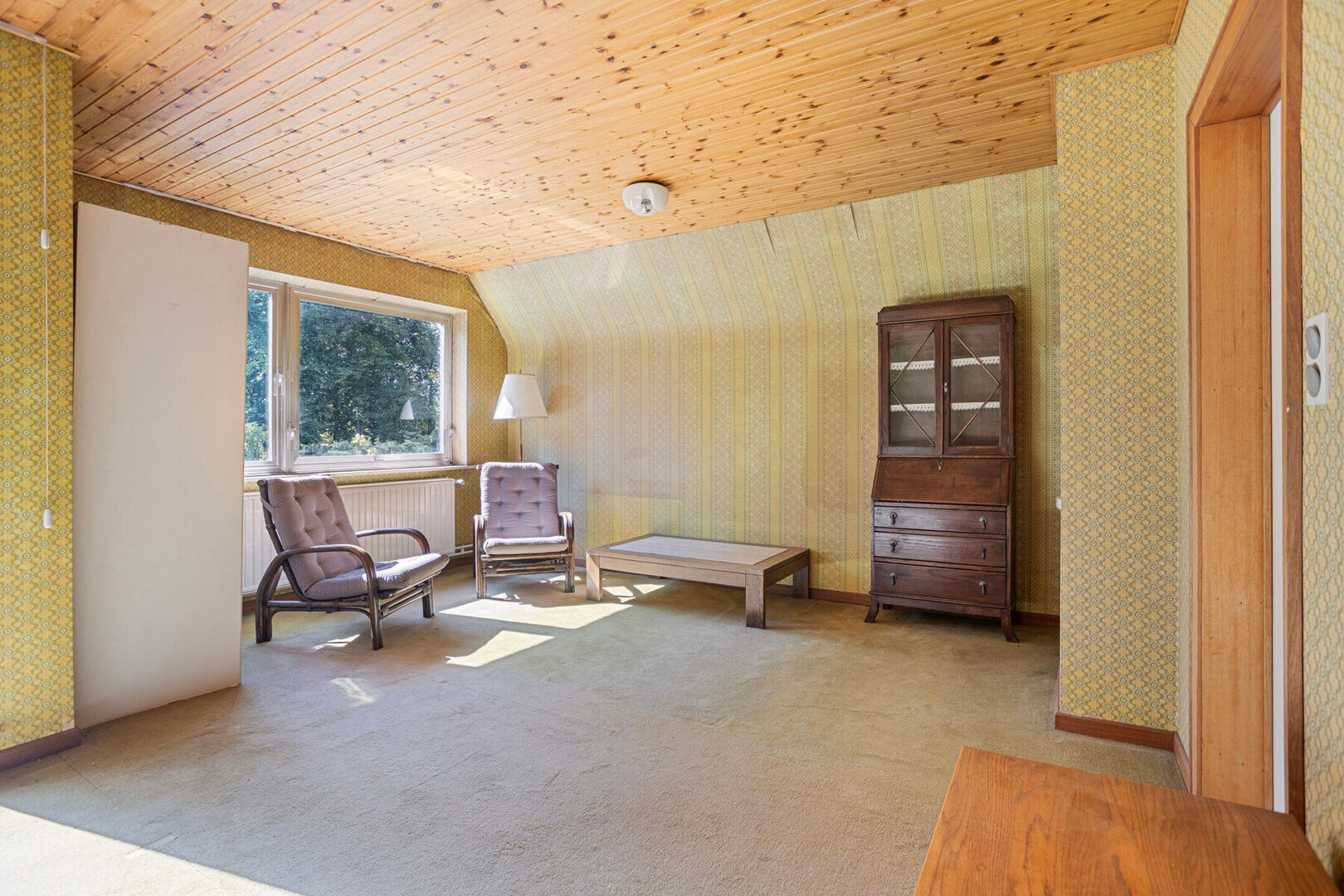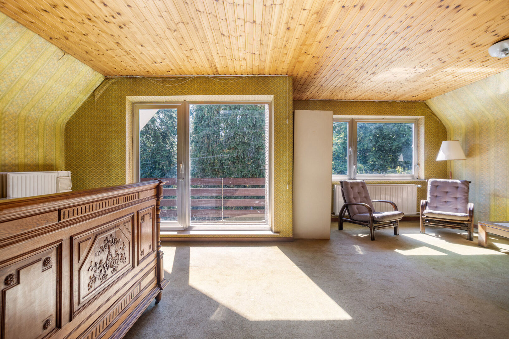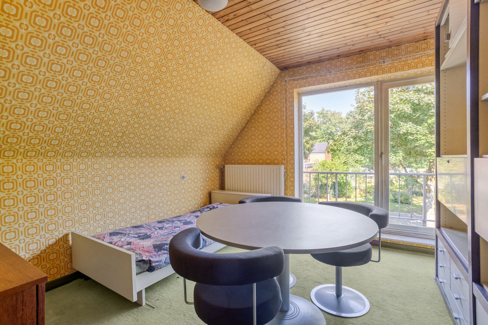 Op de eerste verdieping vinden we een ruime overloop terug die leidt naar een apart toilet, naar de tweede badkamer, naar een kinderslaapkamer / bureel (9 m2) en naar nog eens 4 ruime slaapkamers van circa 32m2, 20 m2, 17m2 en 13m2. De master bedroom, met toegang naar een overdekt terras, is eenvoudig op te splitsen voor een eventuele extra slaapkamer / dressing ensuite. In de tweede grootste slaapkamer, treft men een zolderluik met vlizo-trap naar de zolder van maar liefst 60 m2. Aan bergruimte dus geen tekort hier.