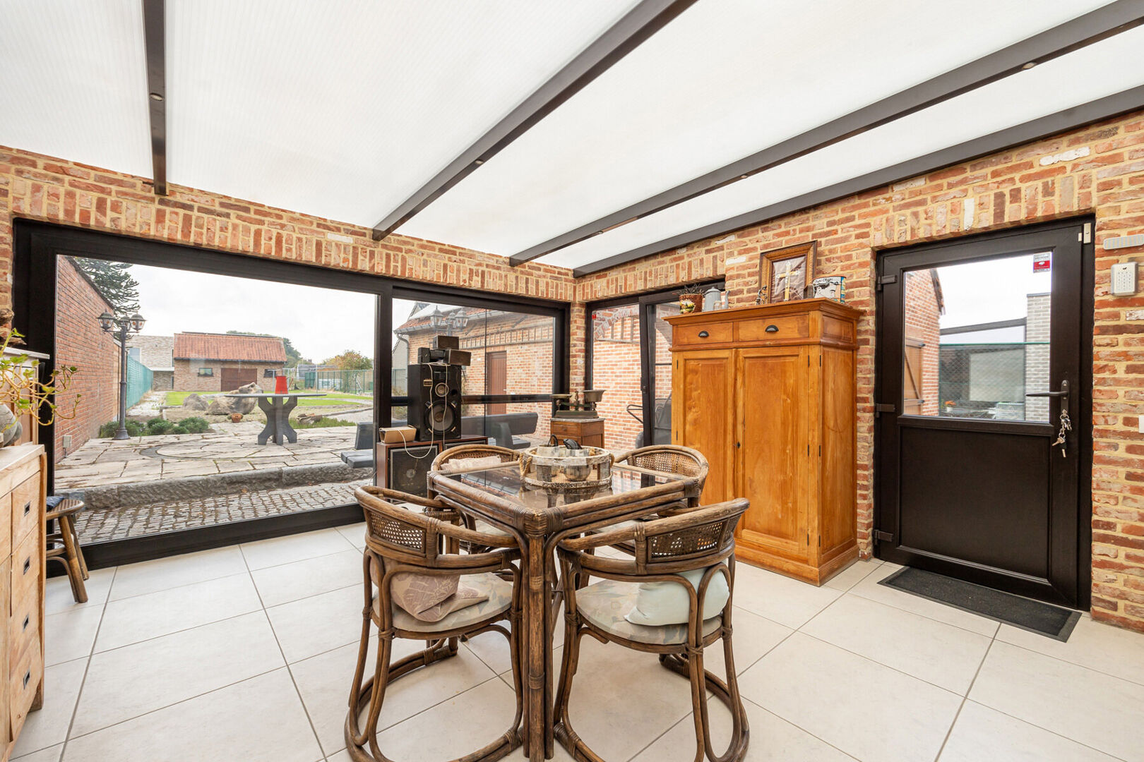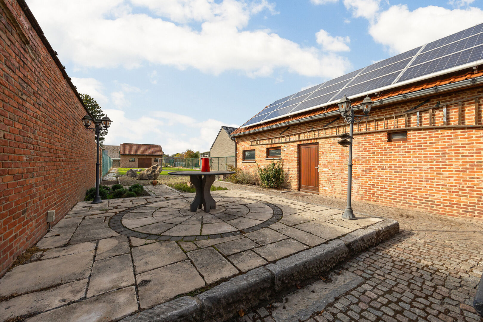 Buiten zorgen twee losstaande garages voor voldoende parkeerruimte en extra bergruimte. Ook op energetisch vlak zit het goed: het dak werd vernieuwd in 2024, er liggen zonnepanelen, de woning beschikt over een HR-gasketel van Viessmann en er is dubbele beglazing aanwezig. Met een EPC-label D en zonder renovatieplicht kunt u hier meteen zorgeloos intrekken.