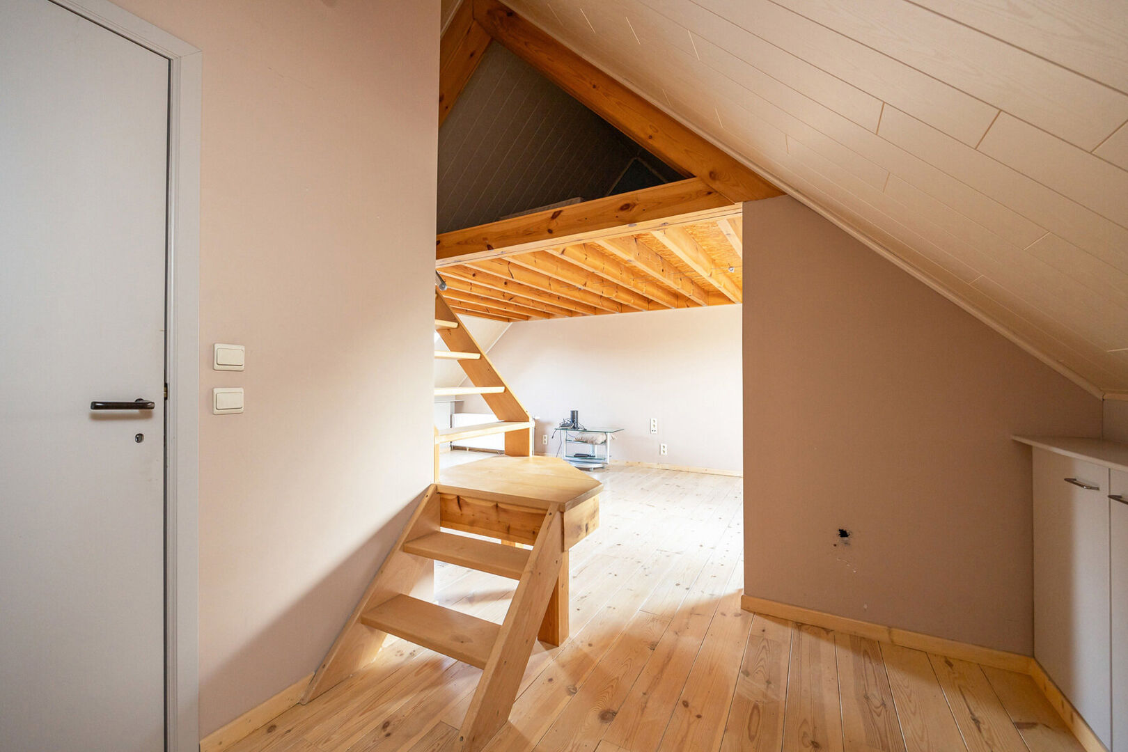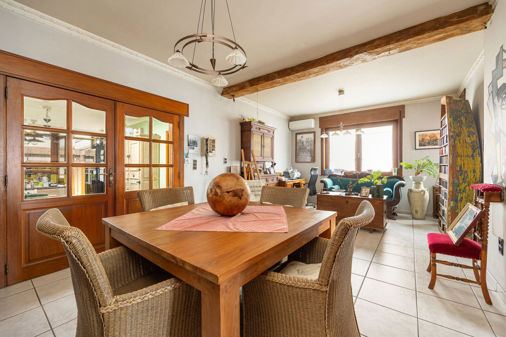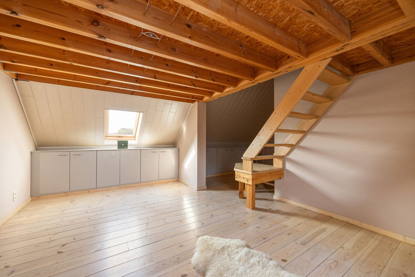 Binnenin beschikt de woning over twee badkamers, één op het gelijkvloers en één op de verdieping. De volledig gerenoveerde zolder doet vandaag dienst als een gezellige multifunctionele ruimte en kan perfect ingericht worden als derde slaapkamer, bureau of hobbykamer.