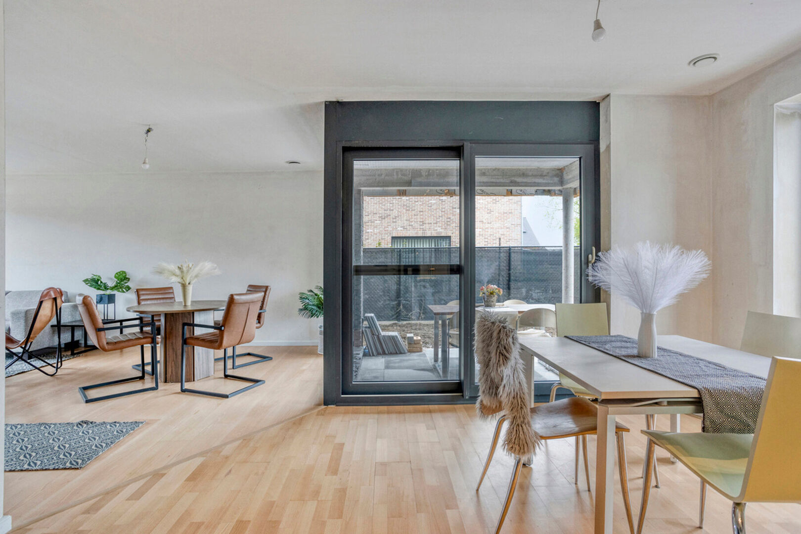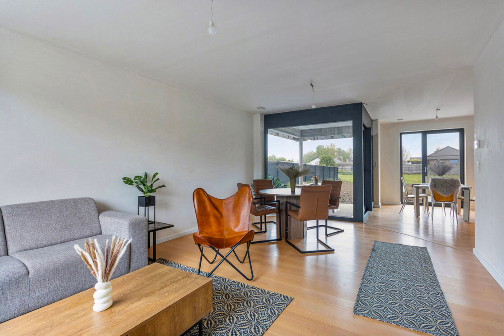Deze woning werd in een warme moderne stijl afgewerkt, ademt gezelligheid uit en is, ondanks het halfopen karakter, enorm lichtrijk.