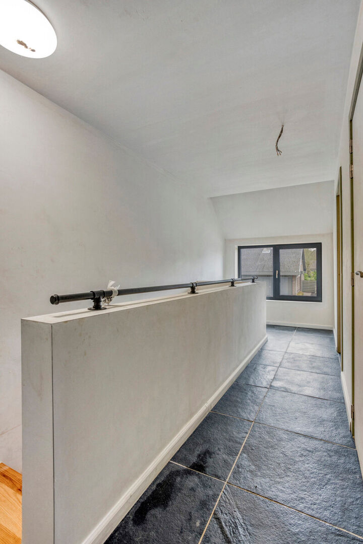Op de eerste verdieping tref je de nachthal, 3 ruime slaapkamers, een toilet en twee badkamers. De nachthal geeft via een uittrektrap toegang tot de tweede- / zolderverdieping. Deze niet afgewerkte zolderverdieping biedt plaats aan een mogelijk 4 de slaapkamer.