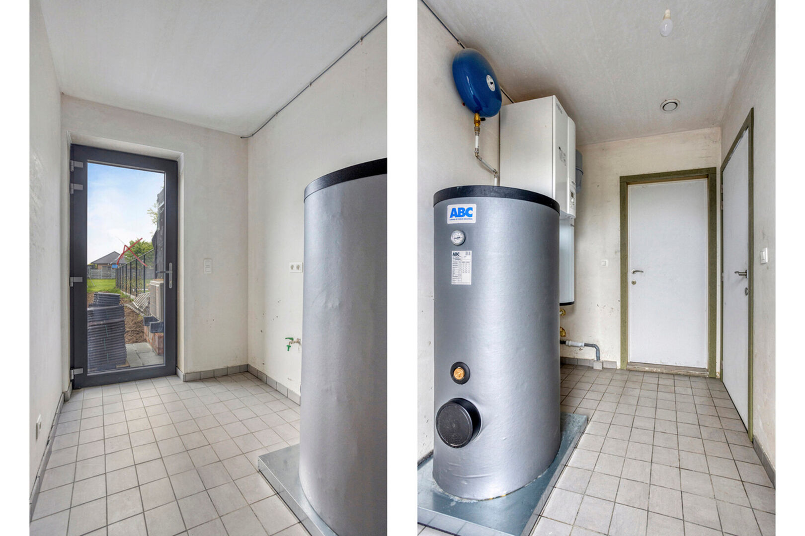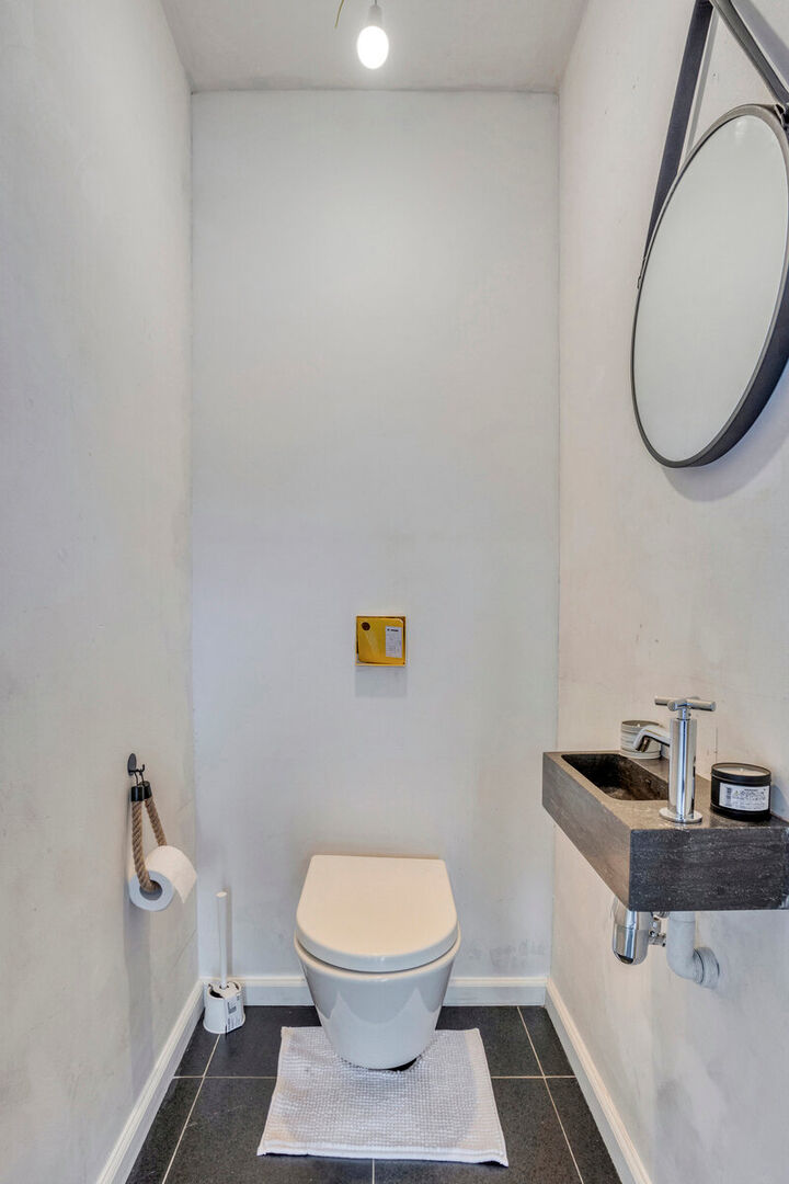 Aansluitend aan de keuken vinden we nog een ruime berging/wasruimte met alle nodige aansluitingen terug. Deze ruimte geeft op haar beurt toegang tot de inpandige garage.