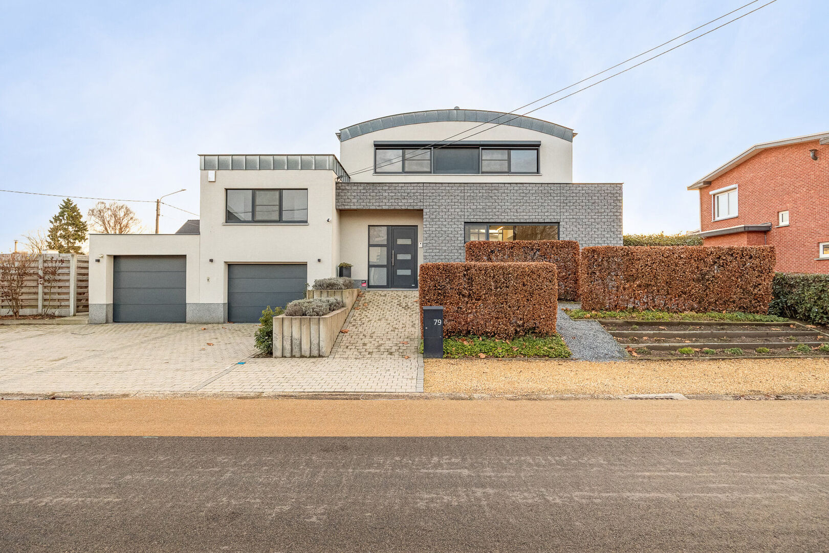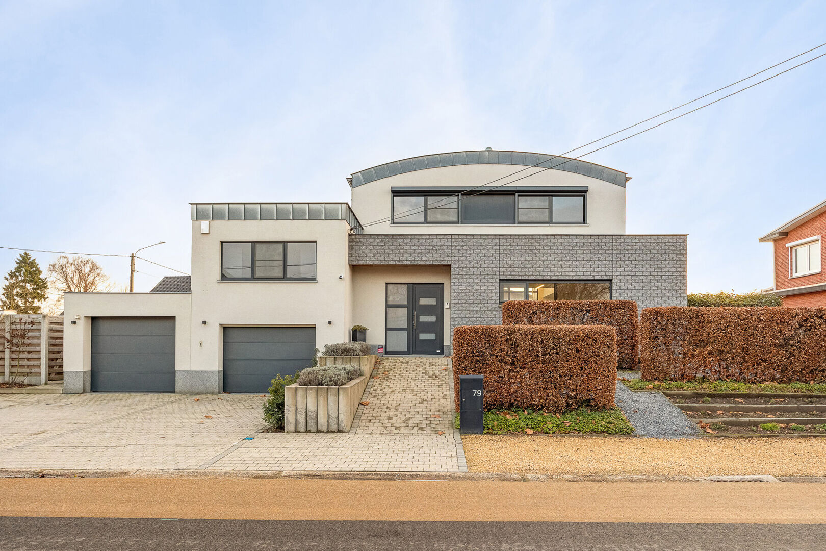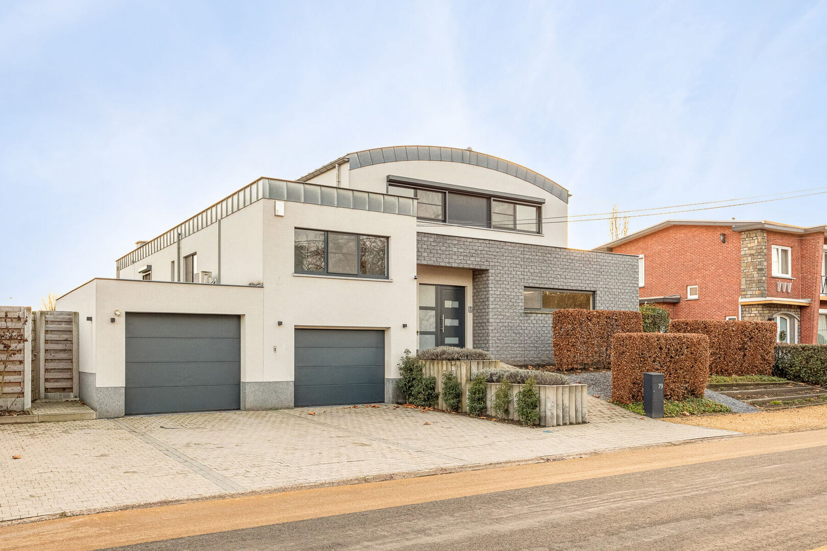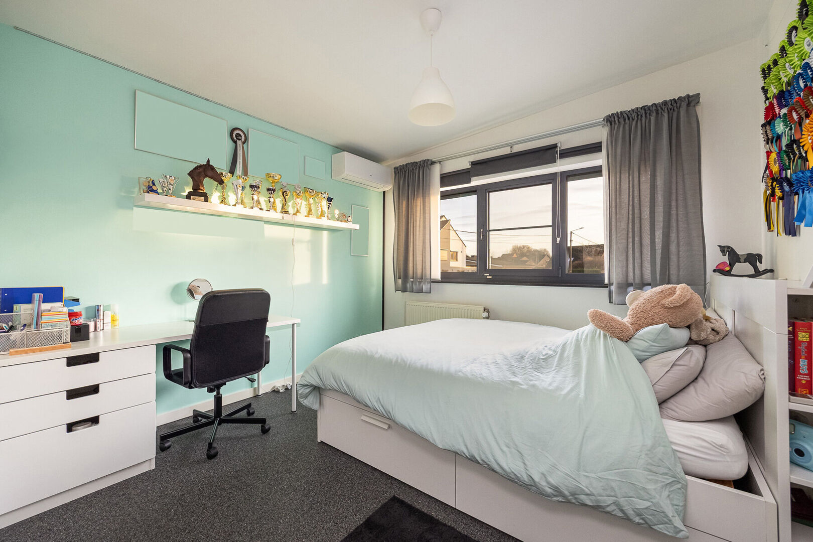 De woning beschikt over drie volwaardige slaapkamers, elk met een aansluitende dressing, en twee stijlvol afgewerkte badkamers die rust en comfort uitstralen. De dressings van de kinderkamers kunnen ook perfect als extra slaapkamer dienen waardoor men over 5 slaapkamers beschikt. Zowel op het gelijkvloers als op de verdieping is er een aparte bureauruimte, ideaal voor thuiswerk of hobby’s. Daarnaast biedt een praktische kelder extra bergruimte.