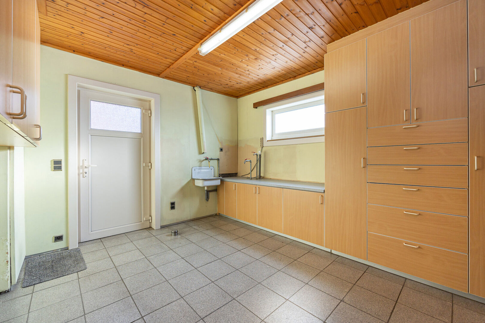 In de Groenstraat 97 te Kuringen, een rustige en groene deelgemeente van Hasselt, bevindt zich deze ruime en degelijk gebouwde woning uit 1991 met een uitzonderlijke ligging op slechts vijftig meter van het kanaal. Deze locatie is een echte troef voor wie houdt van wandelen, fietsen en wonen in het groen, terwijl de autostrade zich op amper vijf minuten rijden bevindt.