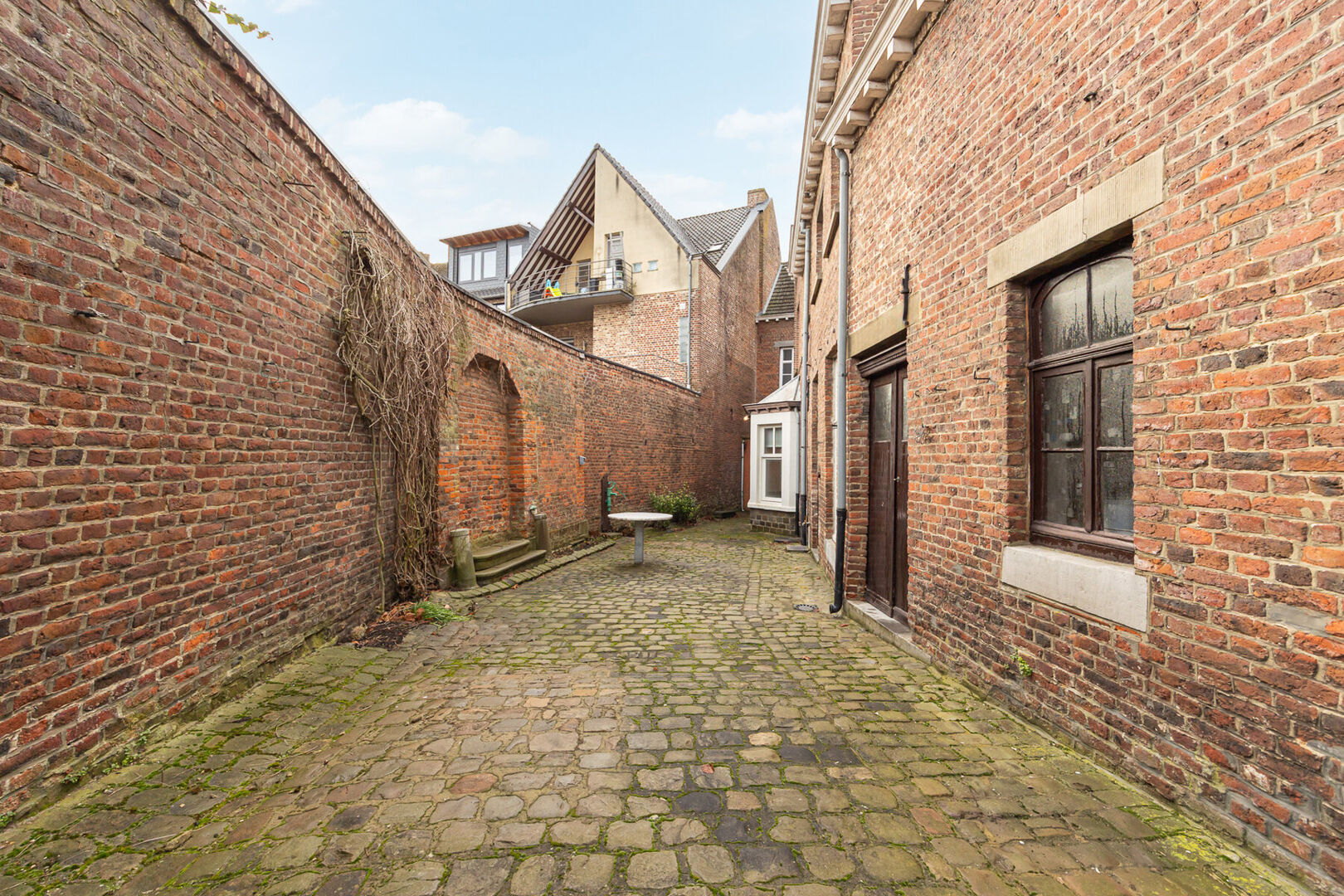 De authentieke stijl van de woning wordt doorgetrokken als men zich toegang verschaft tot het terras en de achterliggende tuin. De scheidingsmuur met de aanpalende woning is op zijn minst het benoemen waard aangezien dit ook een typisch, historische afscheiding betreft.